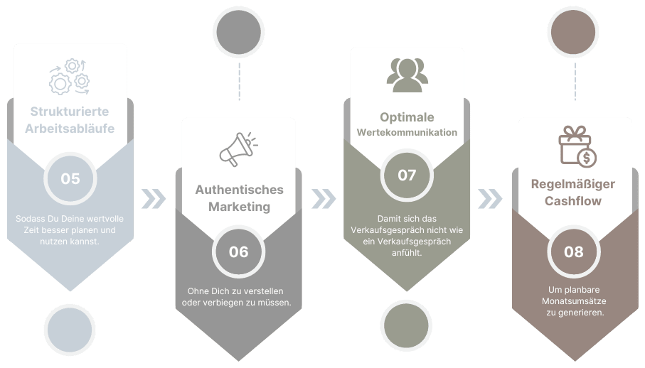 • ​Du erfährst, wie Du kaufkräftige Anfragen erhältst, sodass Du 4- bis 5-stellige Monatsumsätze erzielst.